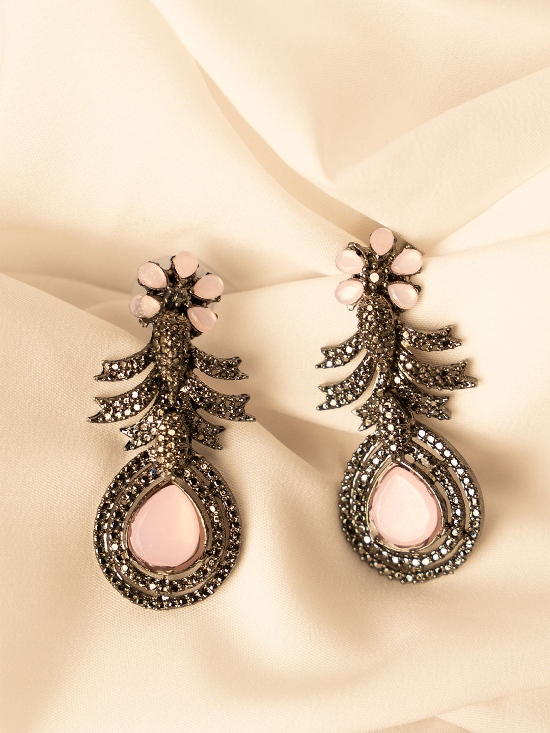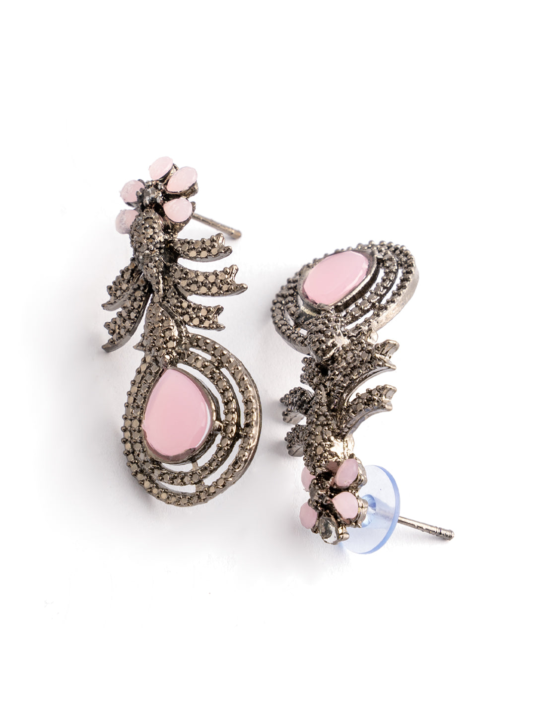 Silver-toned contemporary drop earrings, silver-plated, has cubic zirconia
