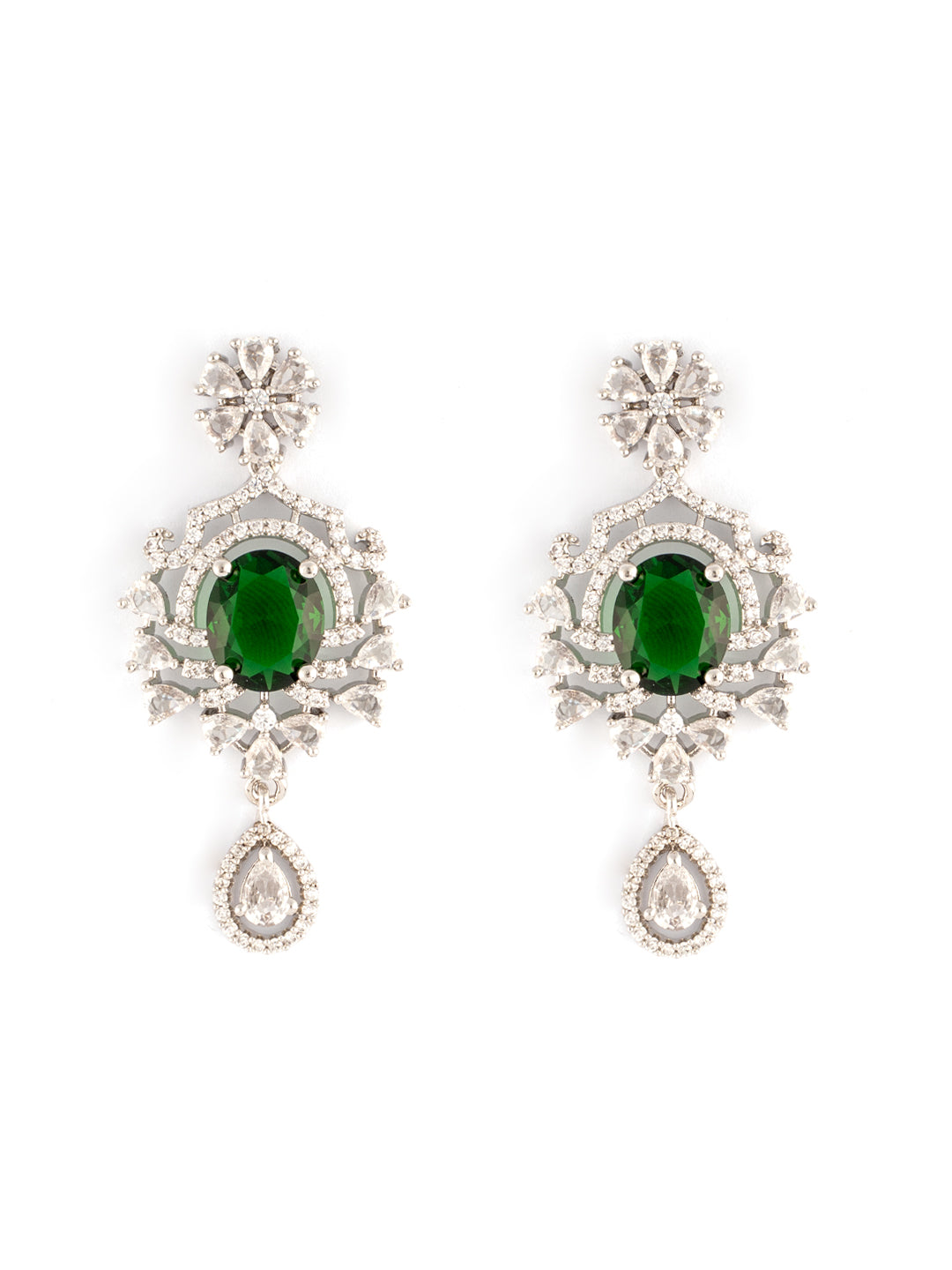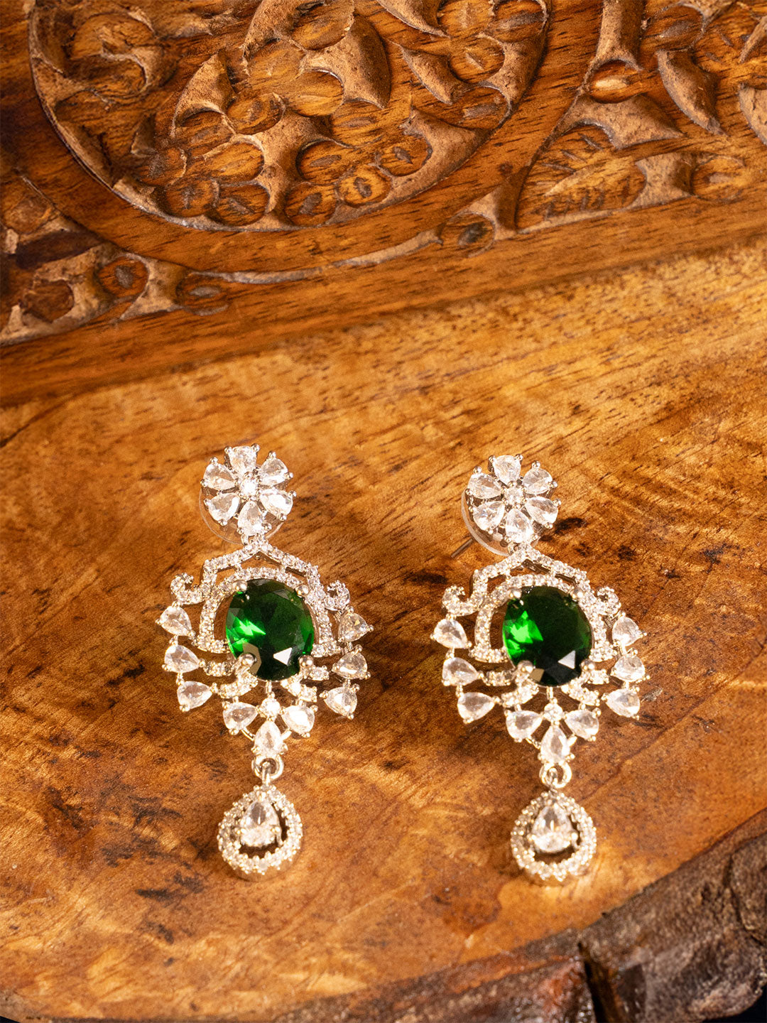 Silver-toned contemporary drop earrings, silver-plated, has cubic zirconia