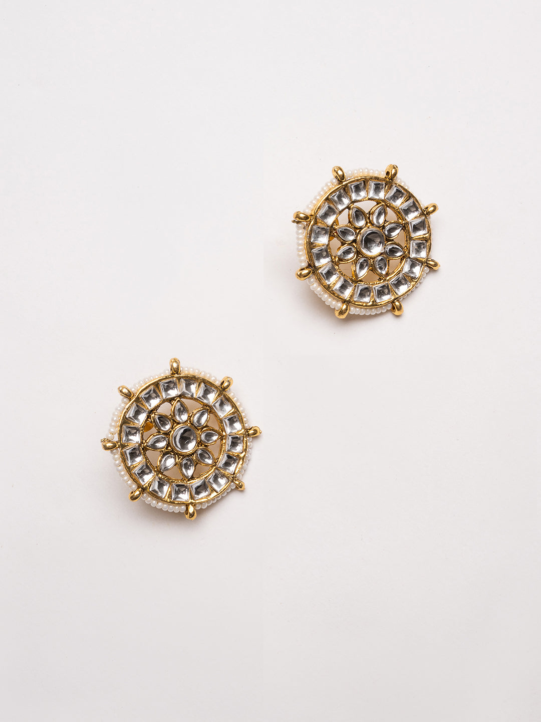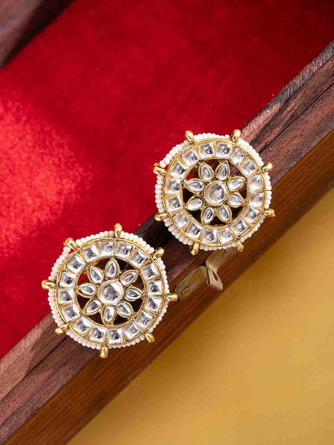 Gold-Plated Artificial Stones Studded And Beaded Circular Shaped Studs