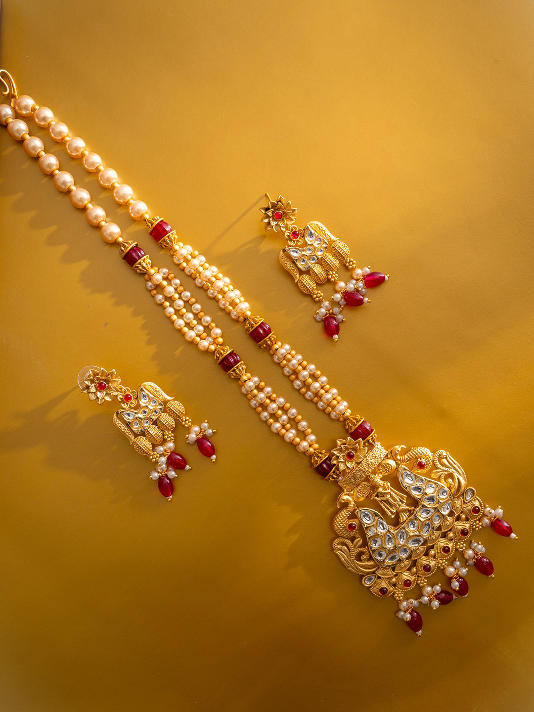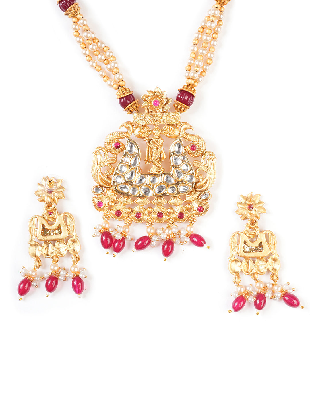 A pair of matching drop earrings, each secured with a post-and-back closure