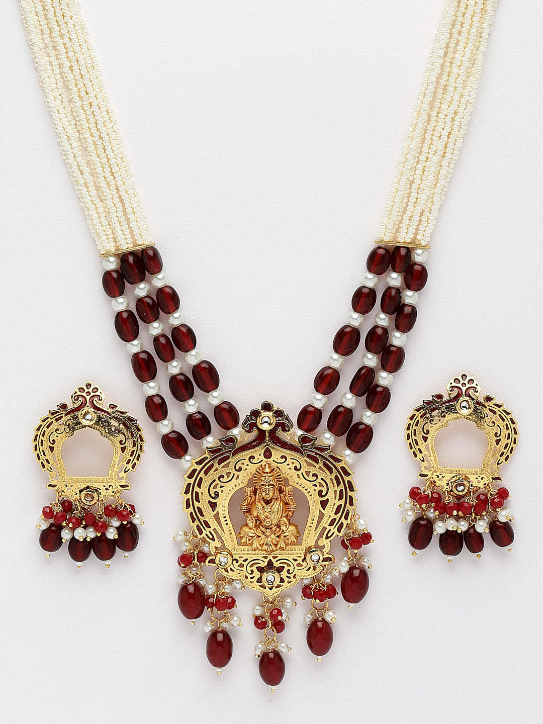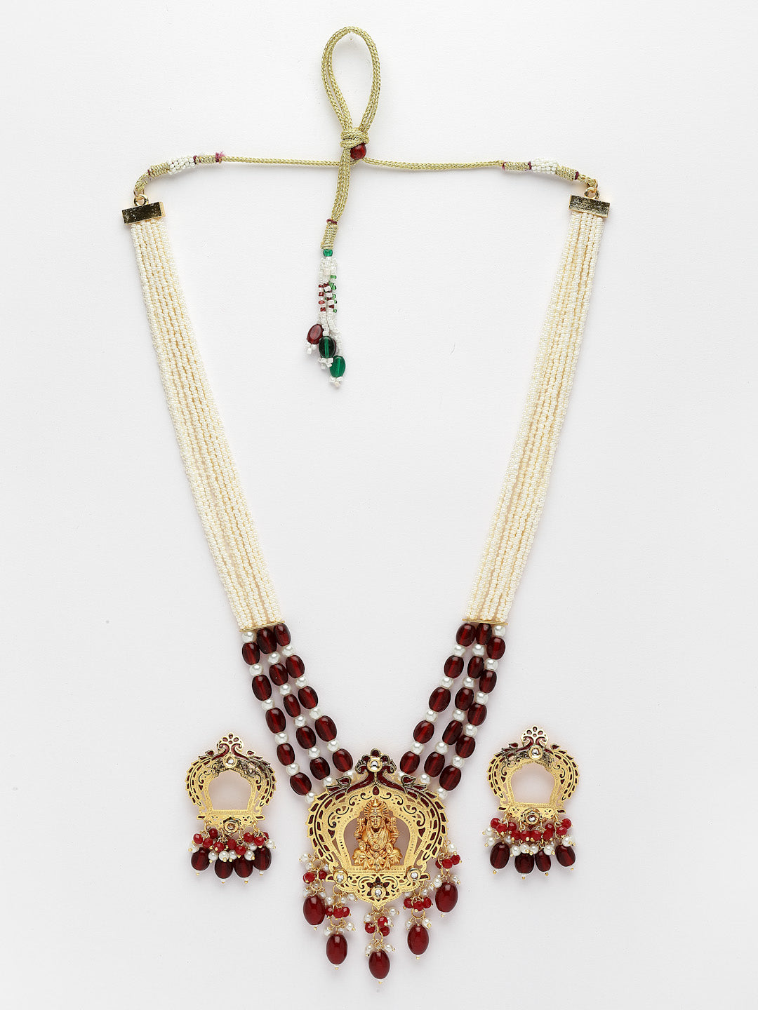 Gold-Plated Kundan Stone-Studded & Beaded Jewellery Set