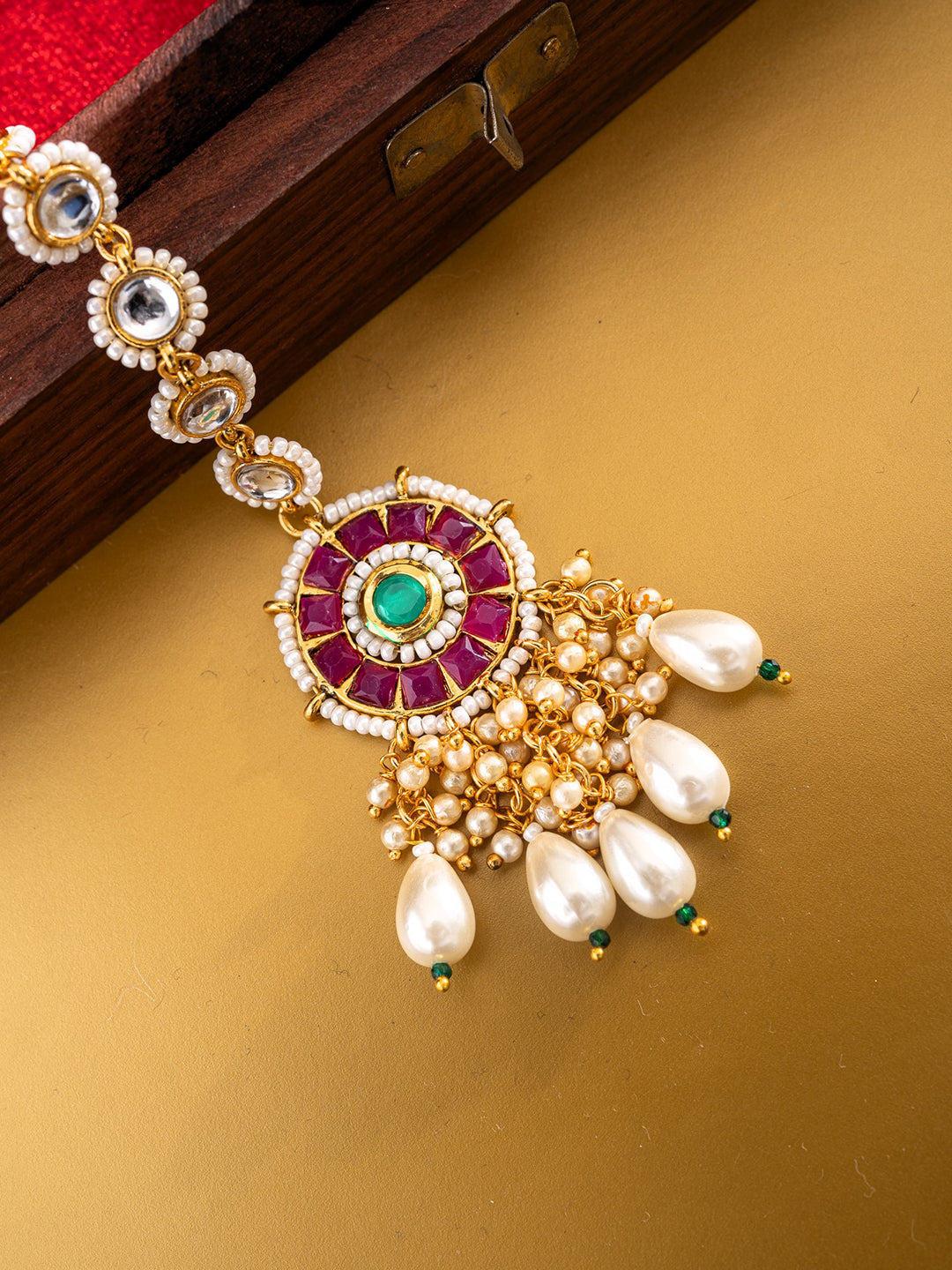 Gold-Plated Kundan Studded & Pearls Beaded Maang Tikka
