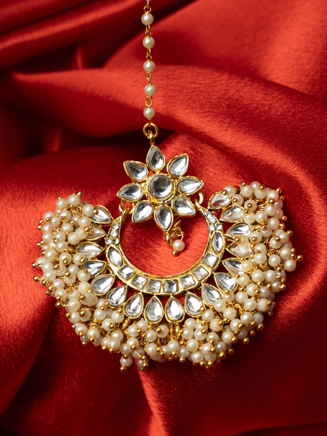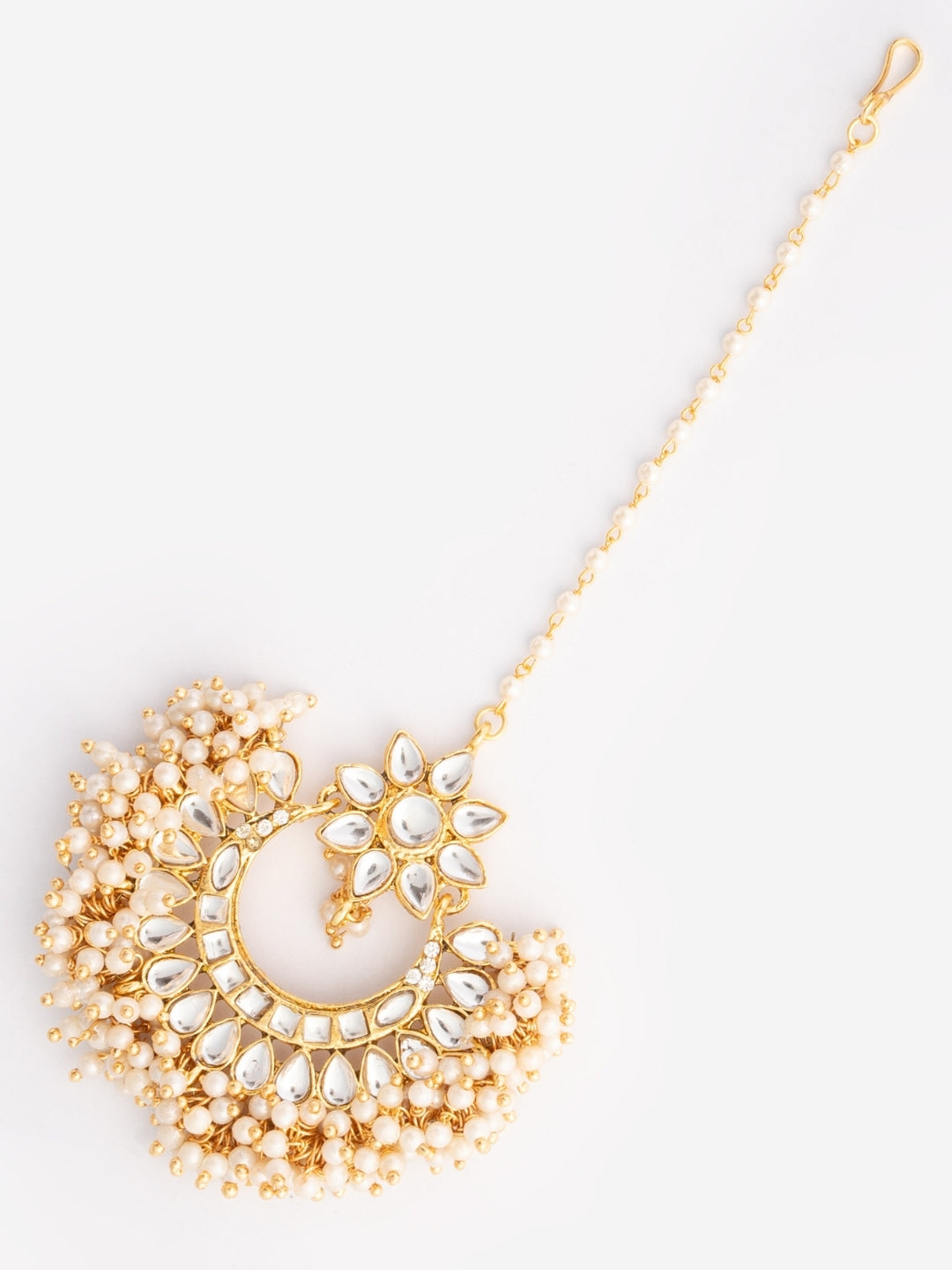 Gold-Plated Kundan Studded & Pearls Beaded Maang Tikka