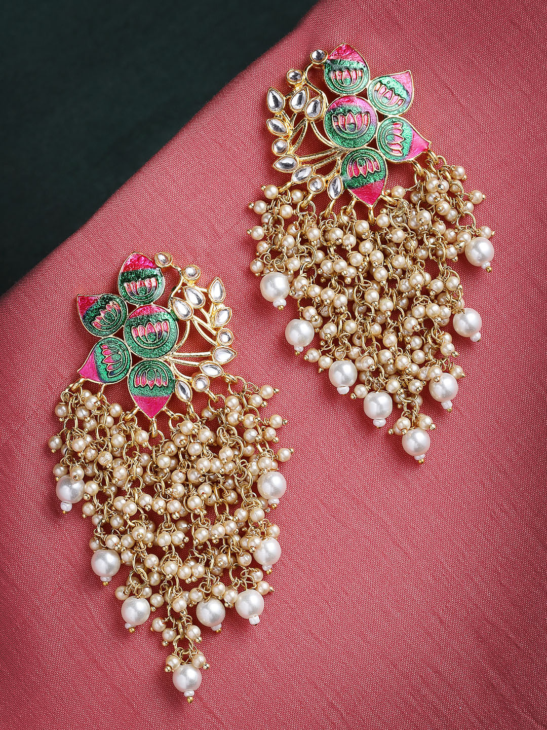 Gold-Plated Meenakari Floral Chandbalis Earrings