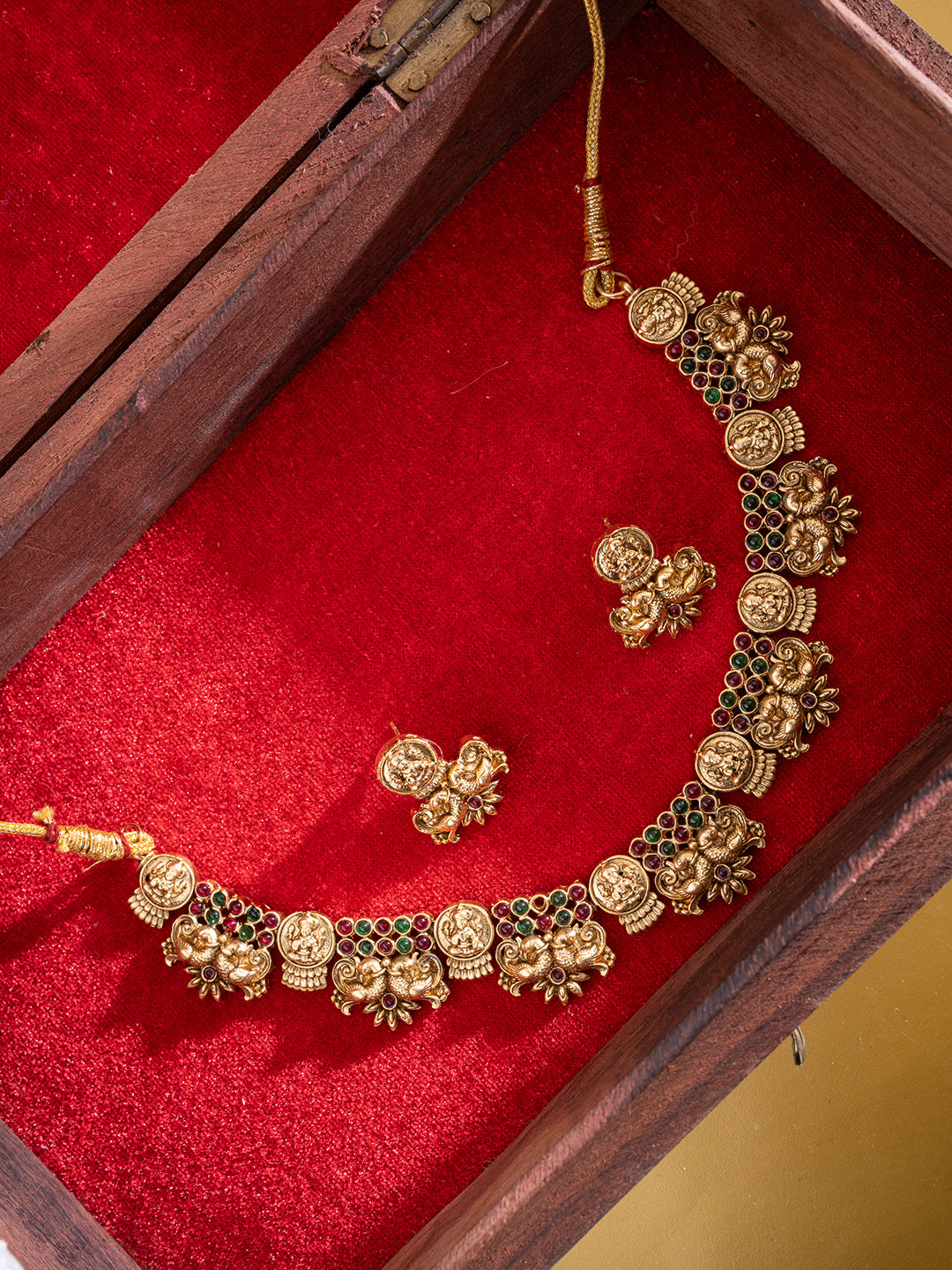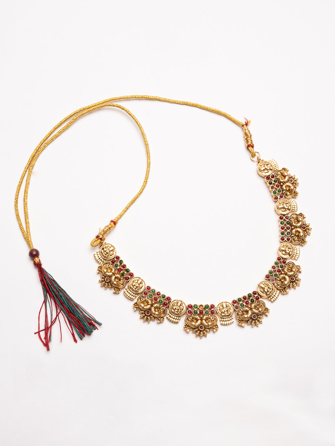 Gold-plated choker necklace, has white stone-studded & beaded details