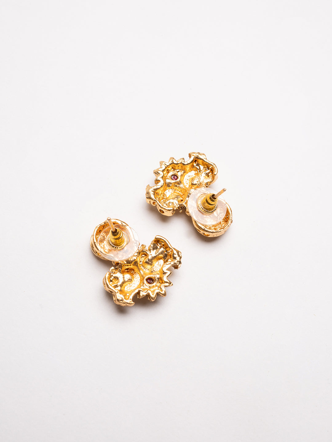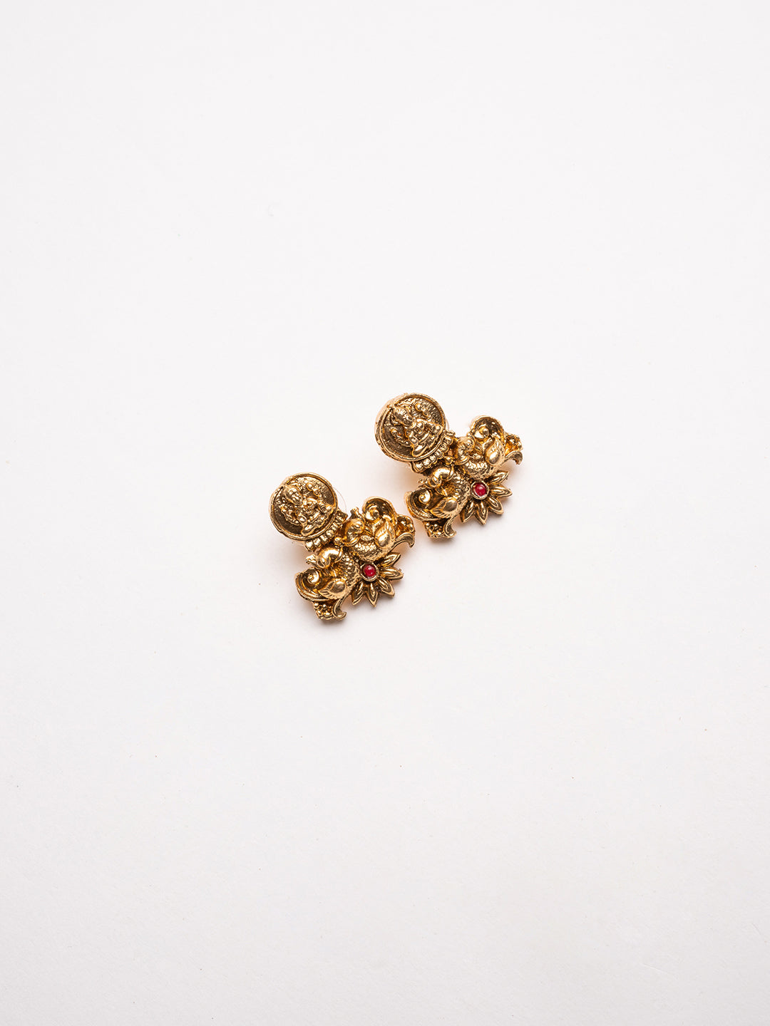 A pair of matching drop earrings, each secured with a post-and-back closure