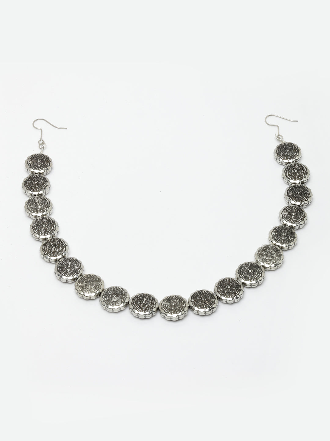 Oxidised Silver-Plated Floral Shaped Matha Patti