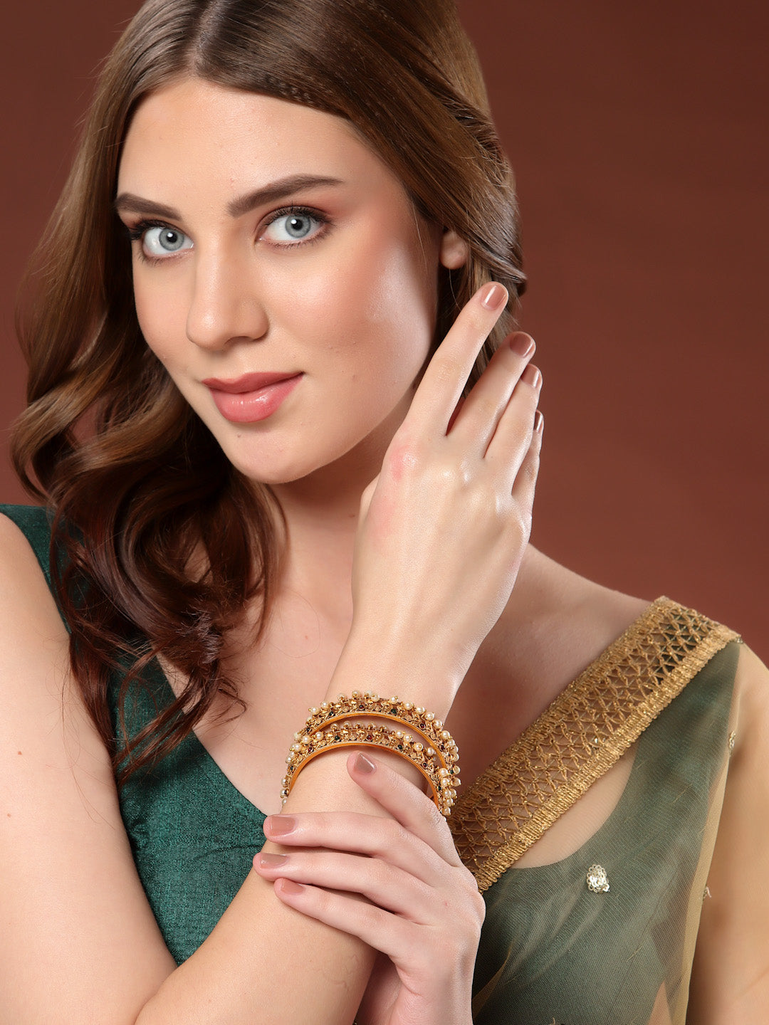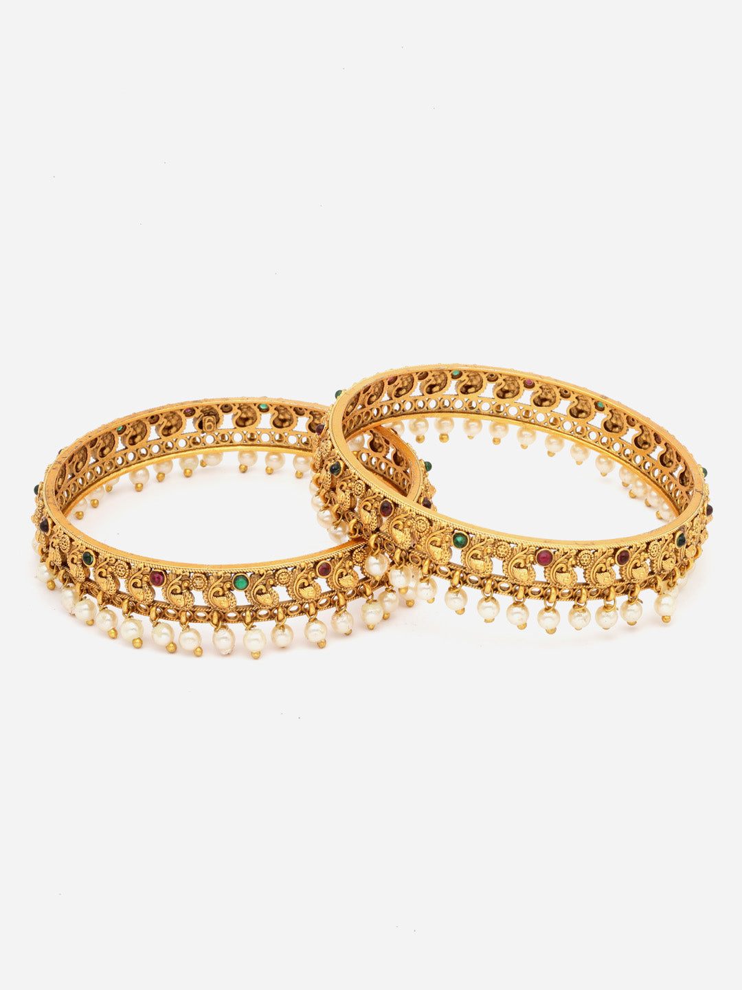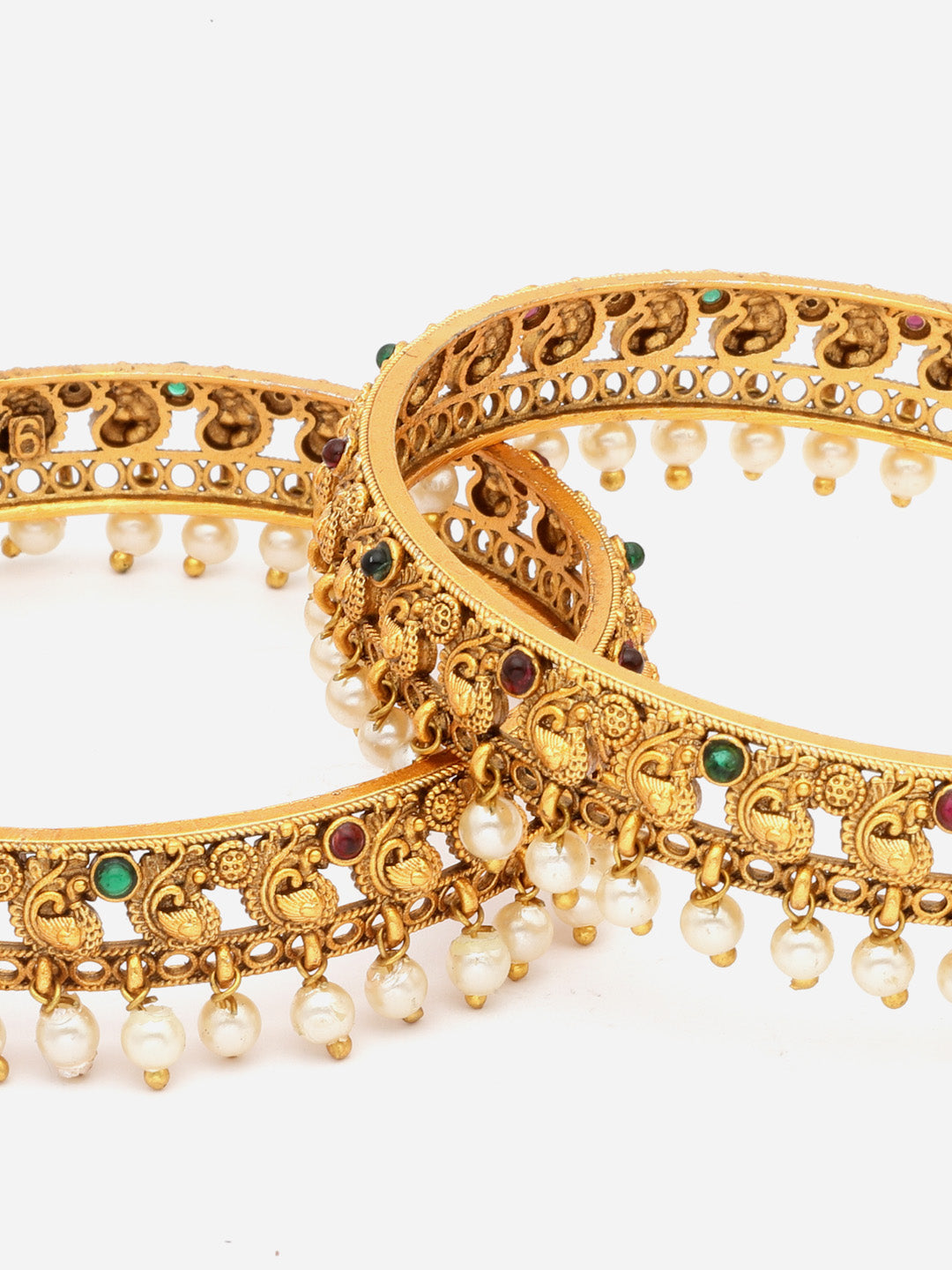 PANASH- Set Of 2 24 CT Gold-Plated Antique Bangles