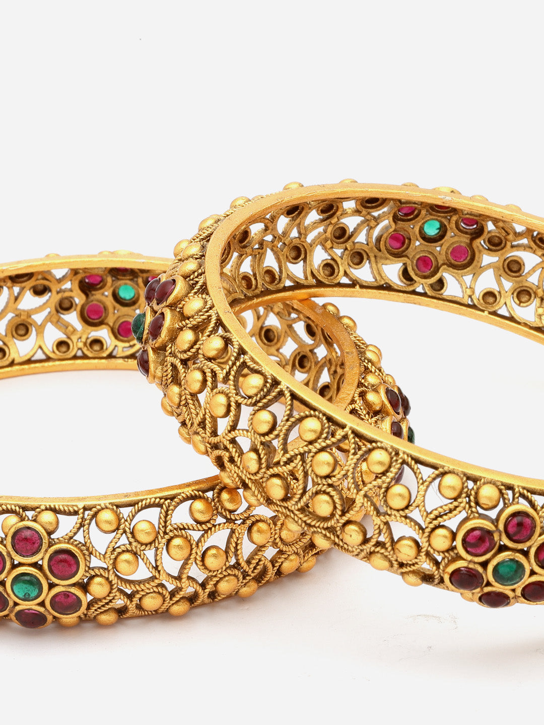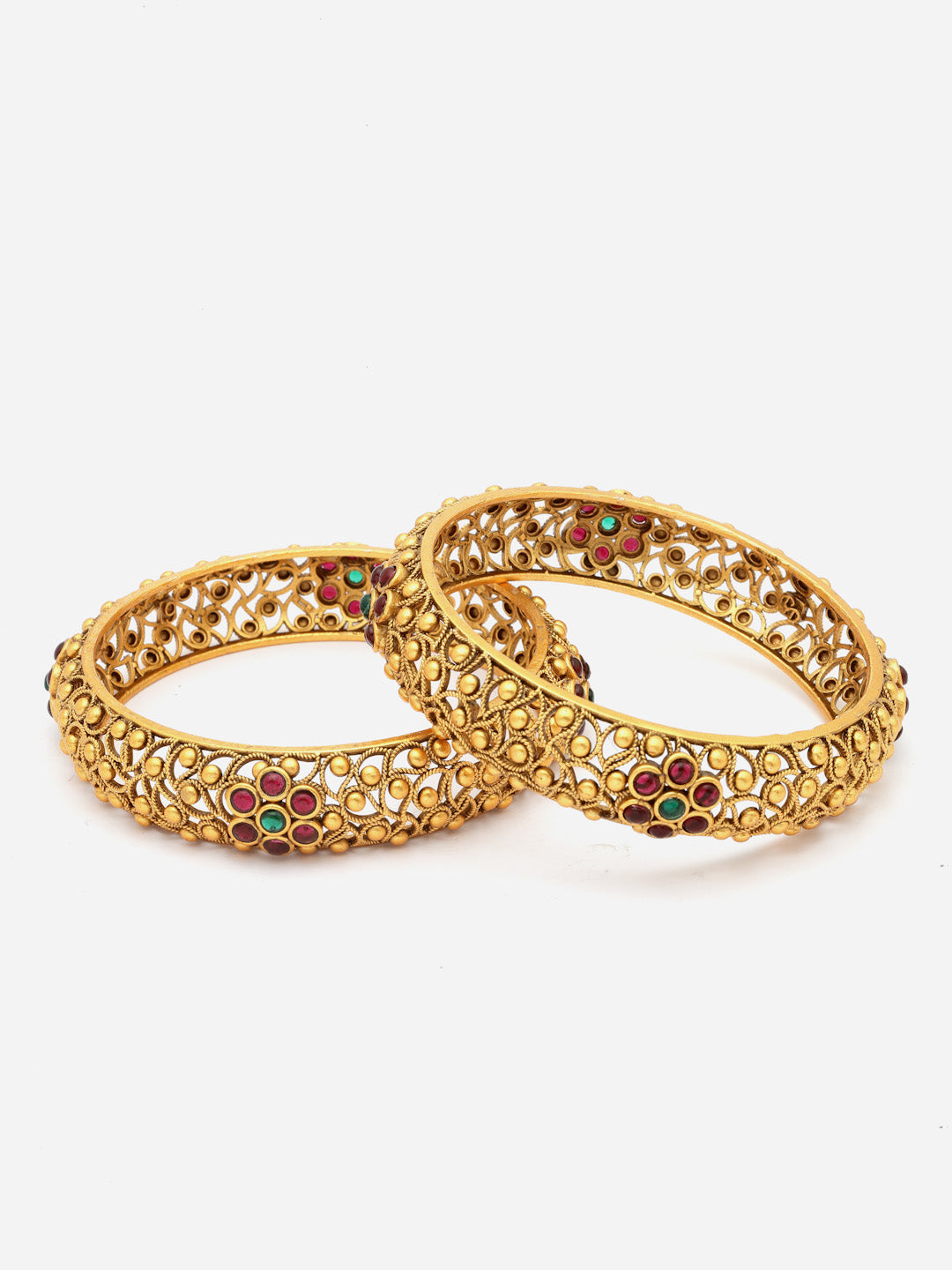Set Of 2 24 CT Gold-Plated bangles, each has AD stone studded details, secured with slip-on closure