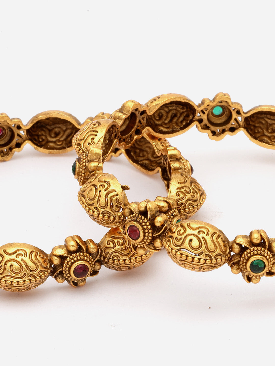 Set Of 2 24 CT Gold-Plated Handcrafted Antique Bangles