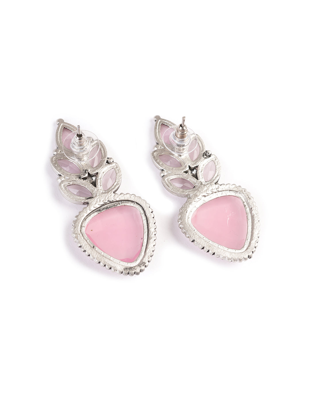 Silver-toned geometric shaped drop earrings, silver-plated, has artifical stones studded