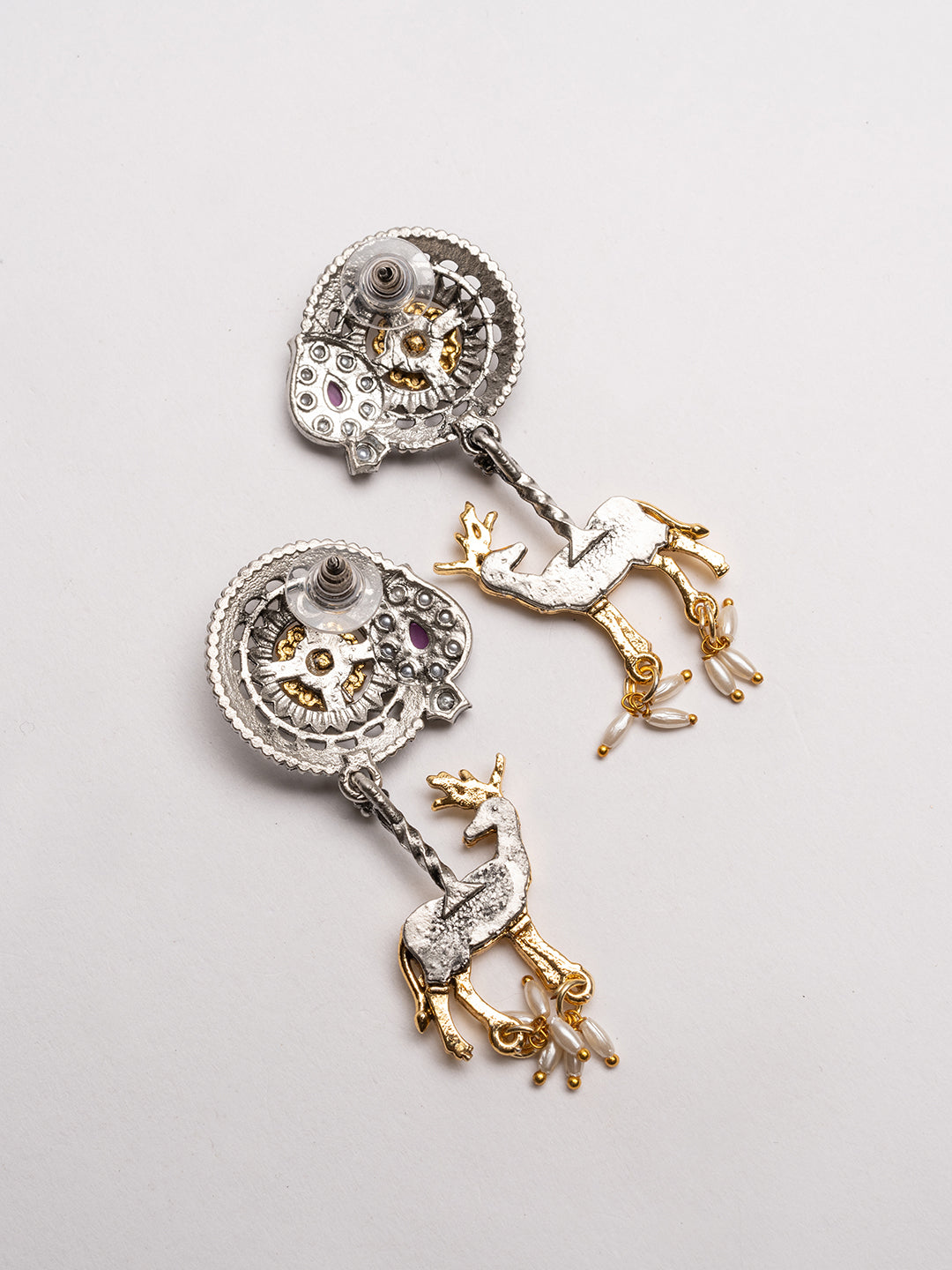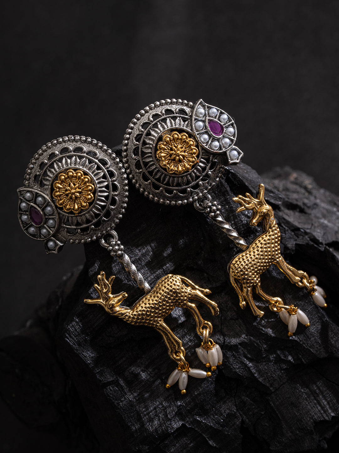 Silver-toned, gold toned and white animal shaped drop earrings, silver-plated, oxidised, has artificial beaded