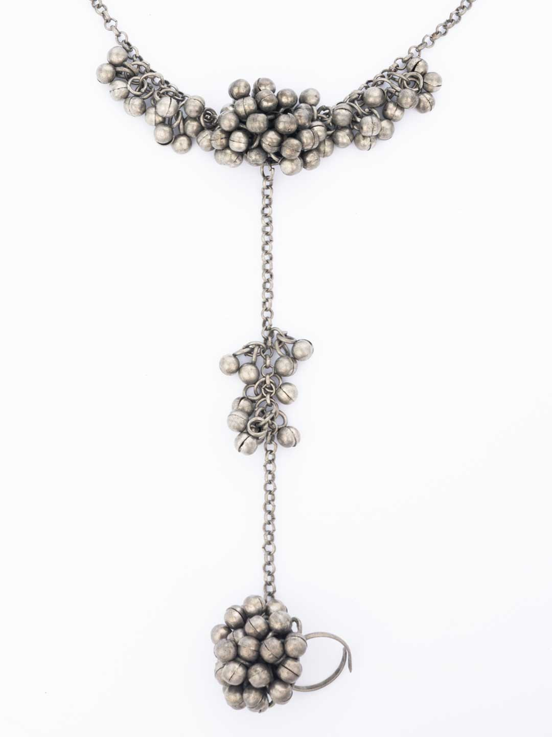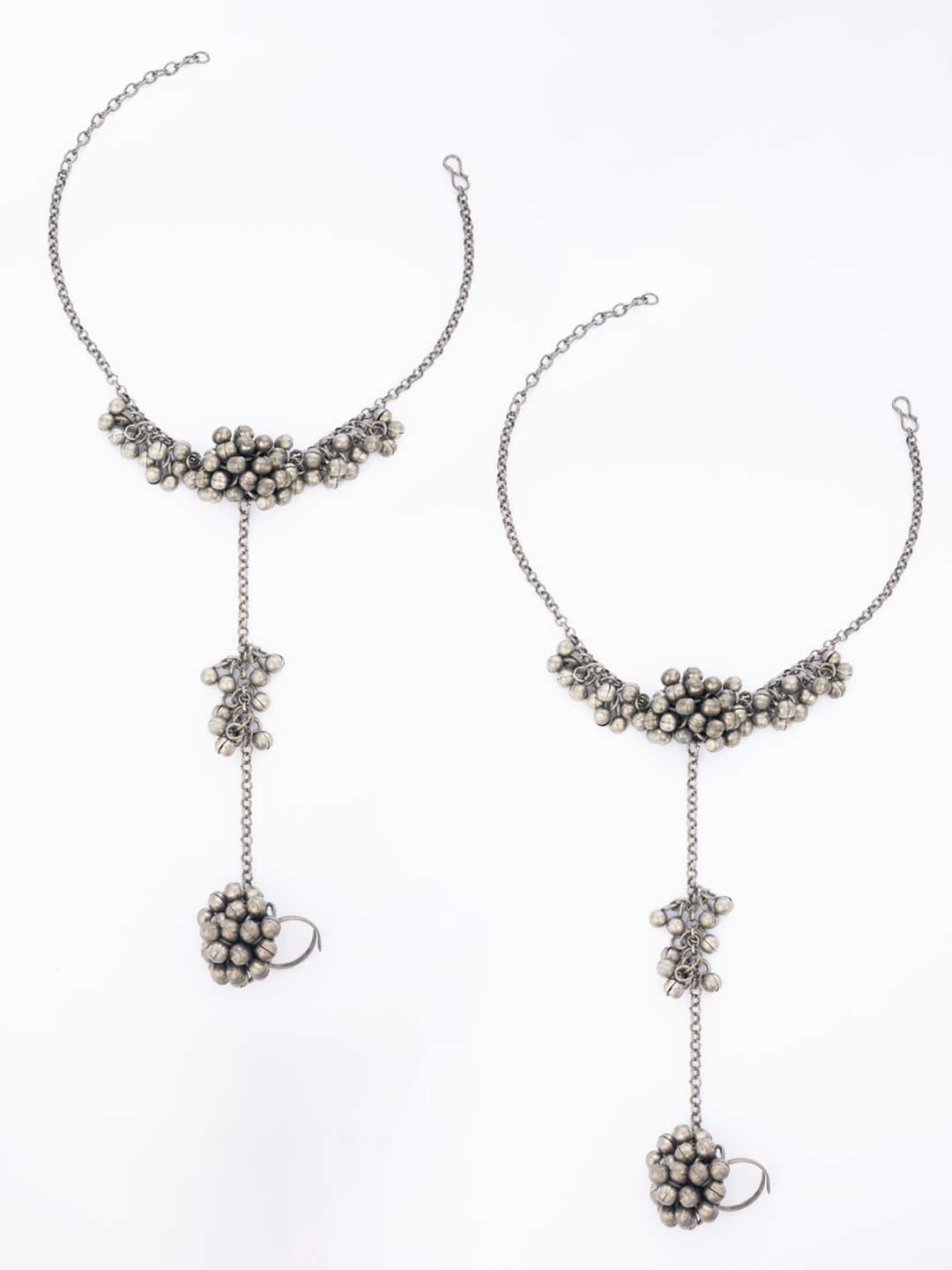 Silver-Plated Beaded Ghungroo Toe Ring Oxidized Anklets