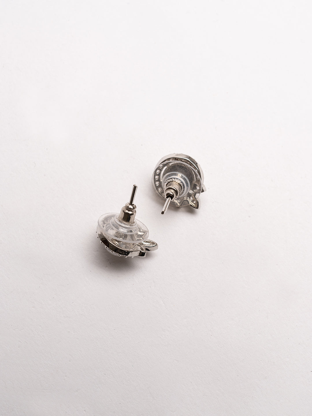 A pair of matching stud earrings, each secured with a post-and-back closure