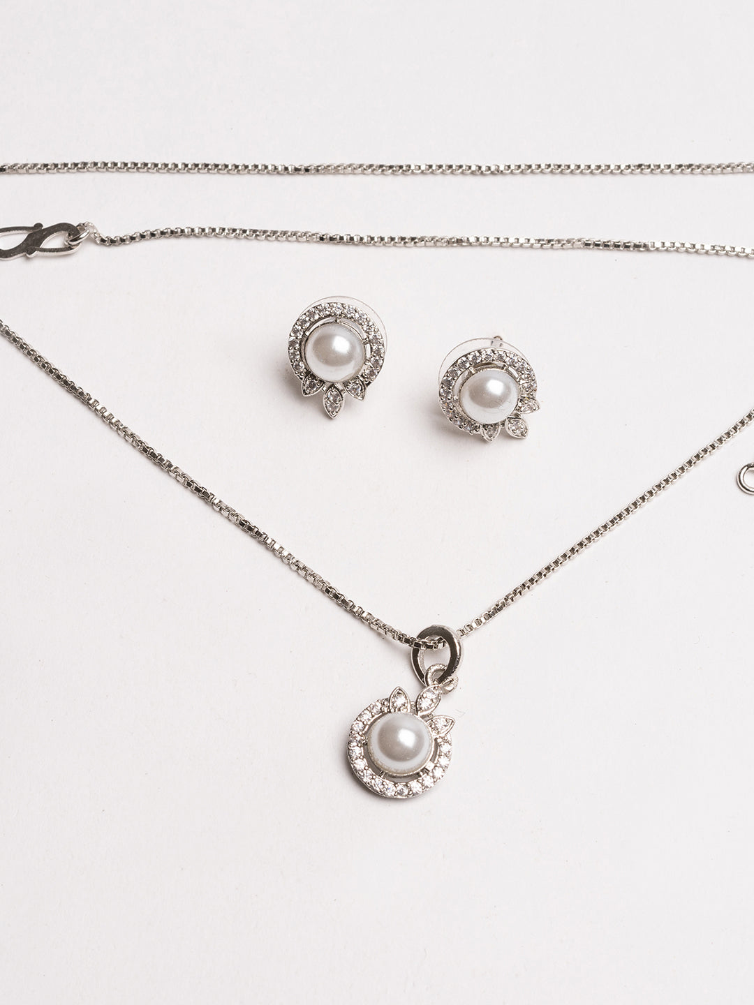 Silver-Plated Cubic Zirconia Studded Jewellery Set
