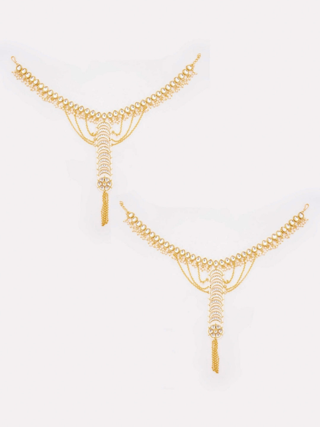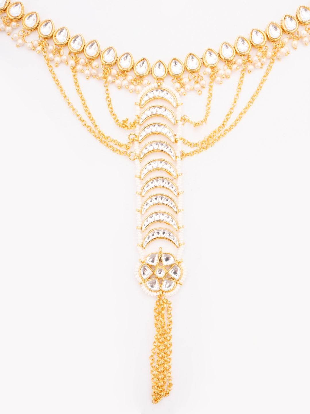 Silver-Plated Kundan Stone Studded & Beads Beaded Ring Bracelet