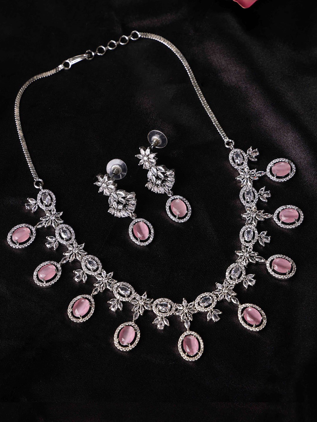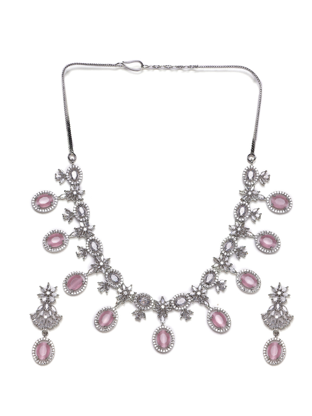 Silver-Plated Solitaire Stones Studded Jewellery Set