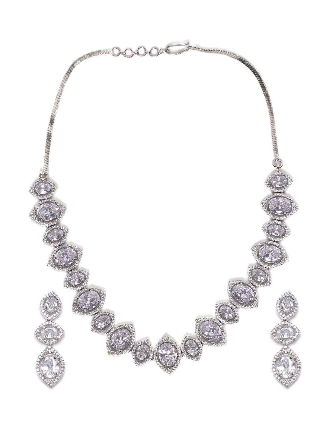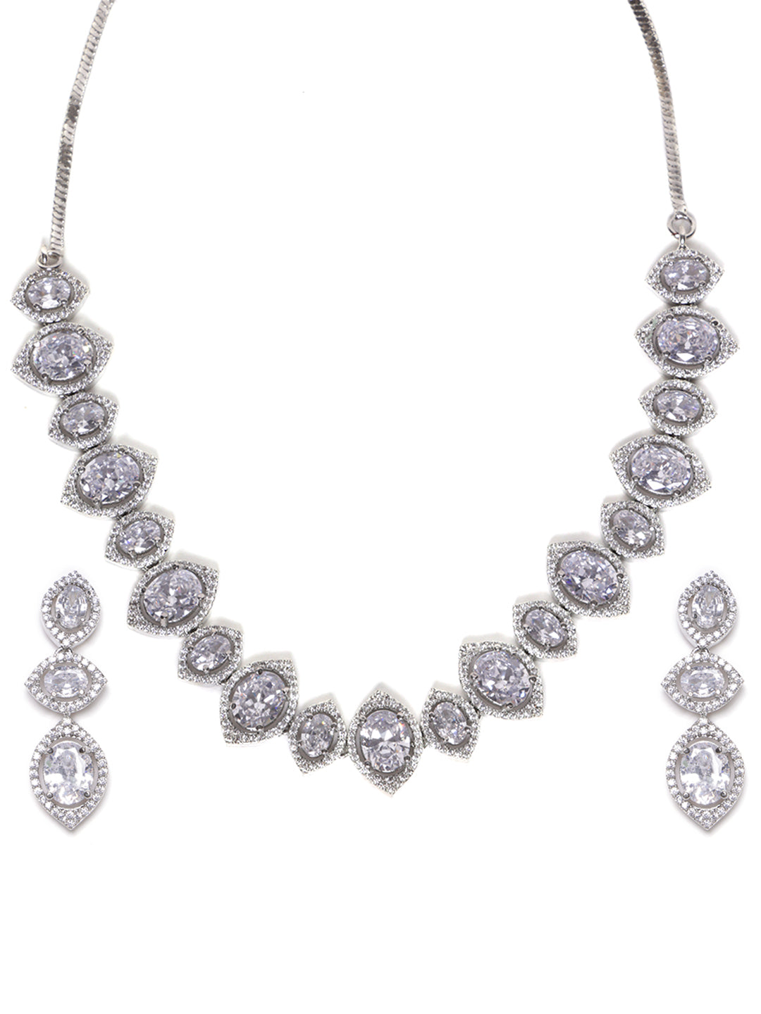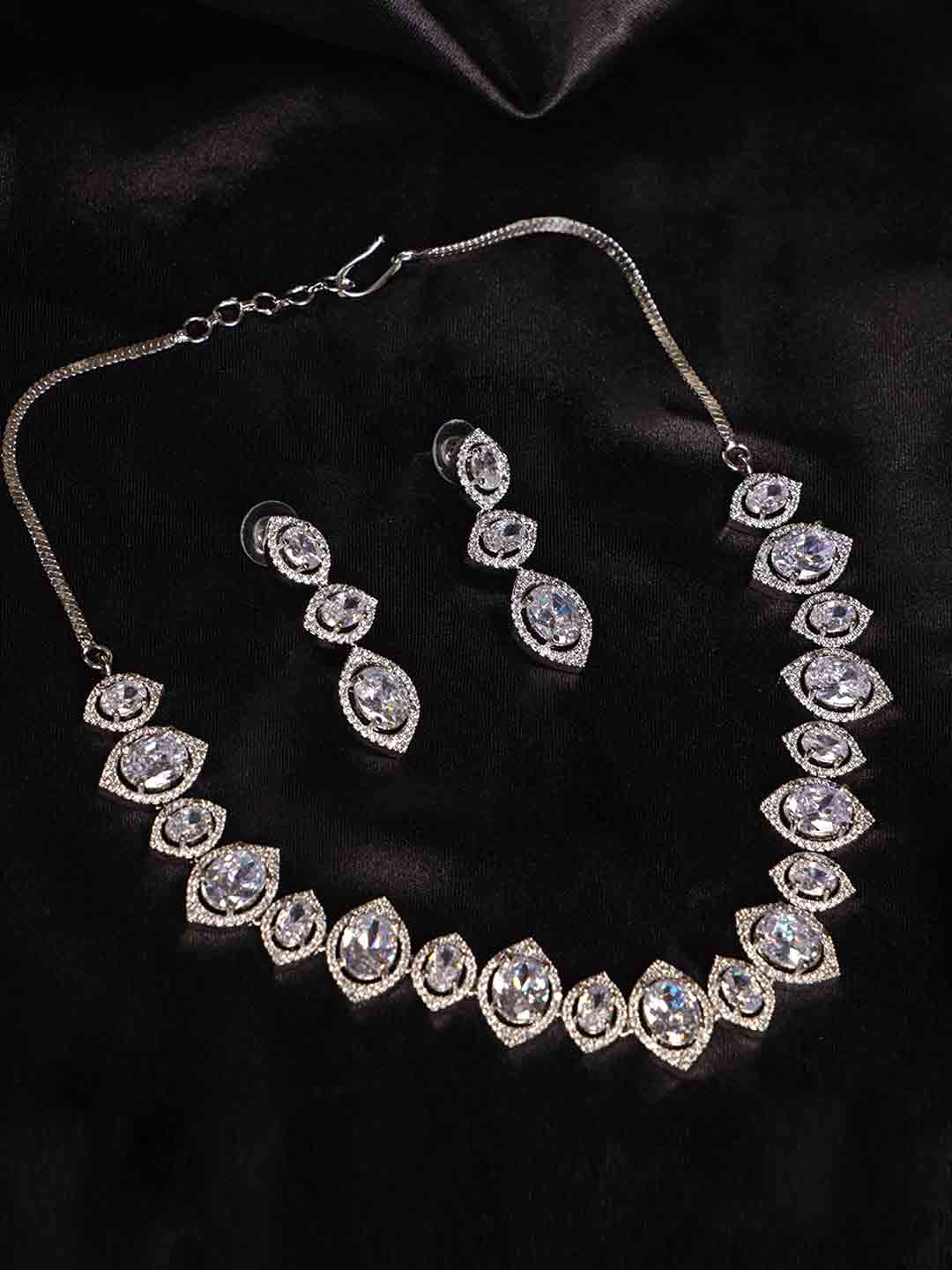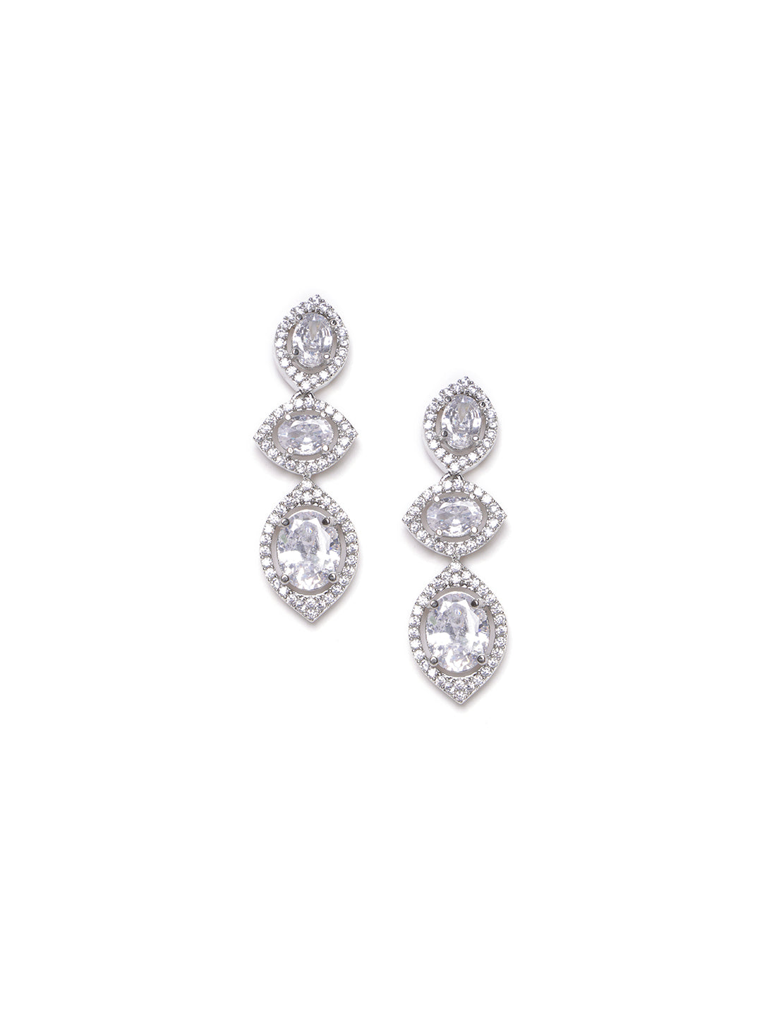A pair of matching drop earrings, each secured with a post-and-back closure